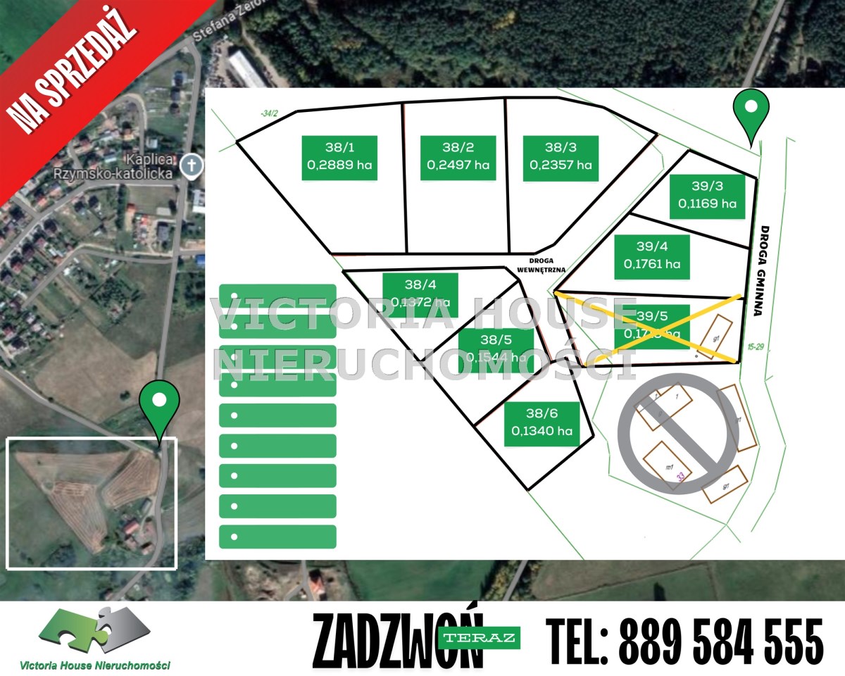 Działka 39/5 o pow. 0,1713 ha za cenę 107.000,00 zł TERAZ 105.000,00 zł- SPRZEDANA! - Działka 38/1 o pow. 0,2889 ha za cenę