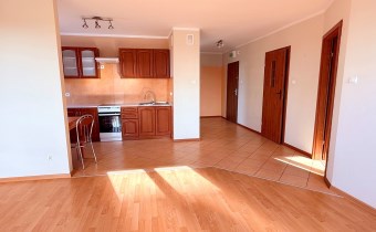 Wnętrze mieszkania to prawdziwa oaza światła i przestrzeni, gdzie słoneczny salon zaprasza do relaksu, a szerokie drzwi prowadzą na przestronny balkon, idealny na poranne kawy. Salon płynnie łączy się z umeblowanym aneksem kuchennym, tworząc przestrzeń sprzyjającą kulinarnym eksperymentom. Mieszkanie oferuje także dwie przytulne sypialnie, które mogą pełnić funkcję pokoi gościnnych lub domowego biura. Łazienka z brodzikiem i WC staje się miejscem codziennego odprężenia, a funkcjonalny przedpokój wita domowników i gości. Dodatkowym atutem jest piwnica o powierzchni 3,70 m2, doskonała do przechowywania sezonowych skarbów czy sportowego sprzętu.
