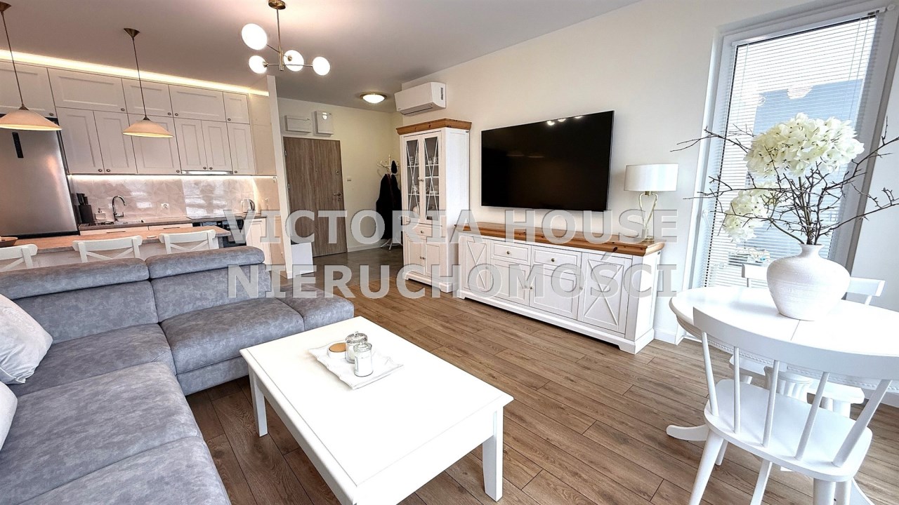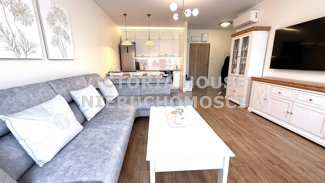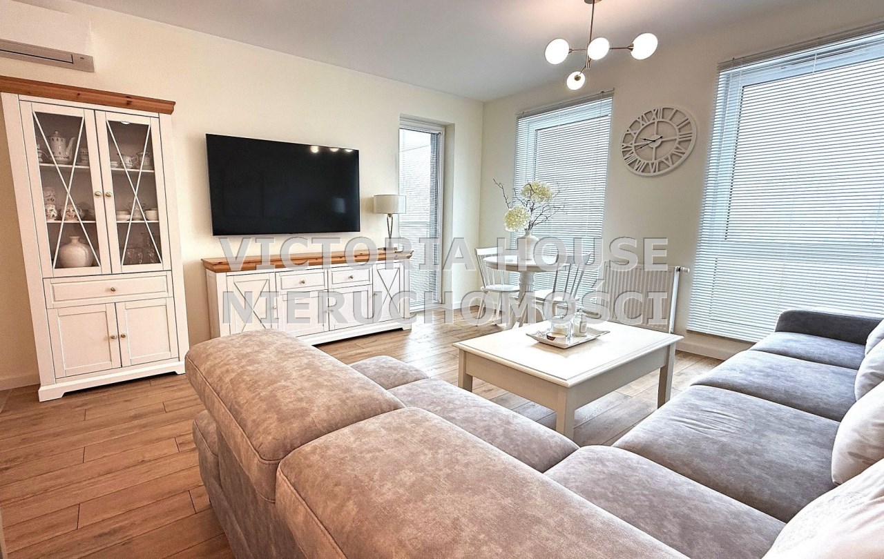 Całe oferowane wyposażenie pozostaje w mieszkaniu – od klimatyzacji i pełnej zabudowy kuchennej, po meble, sprzęty AGD i RTV – wszystko gotowe do natychmiastowego użytkowania.